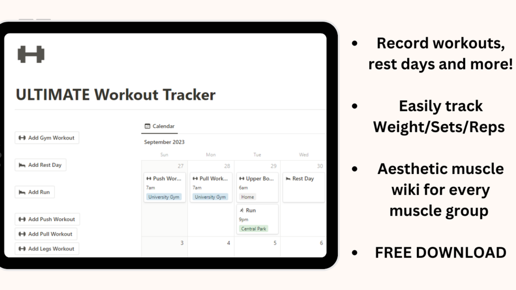 Use Notion to track your workouts in an aesthetic, accountable and easy way with this FREE TEMPLATE!